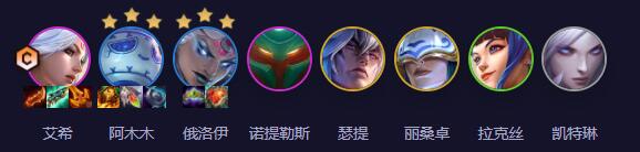 艾希、阿木木、俄洛伊、诺提勒斯、瑟提、丽桑卓、拉克丝、凯特琳。