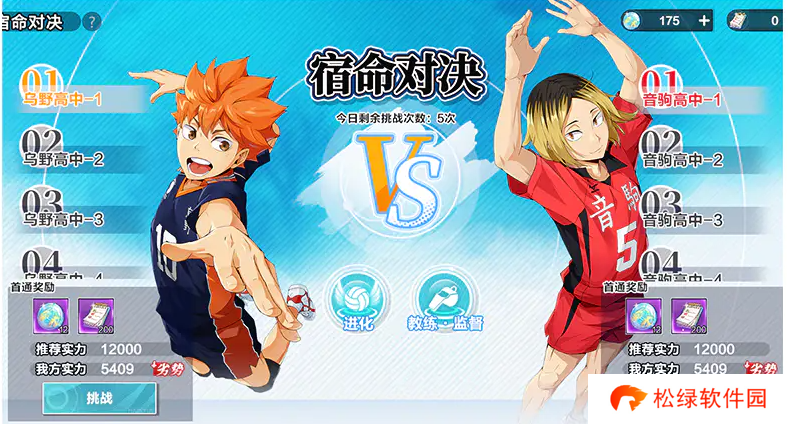 在「宿命对决」中,可通过挑战乌野高中和音驹高中获得纪念徽章、指导经验等奖励※每天可以挑战10次,挑战次数于每日6:00重置