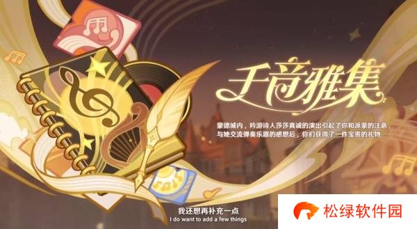 音游,常驻活动。除了使用之前已经获得的乐器进行演奏,还可以游玩和编辑官方和其他玩家制作的曲谱,可以去纳塔流泉之众可以购买两种新乐器。