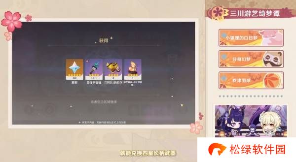 活动【三川游艺绮梦谭】限定武器,参与活动即可免费获得并精炼。