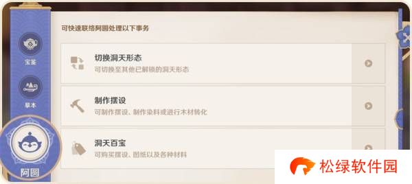 尘歌壶新增【阿圆】页签,页签内提供【切换洞天形态】、【制作摆设】、【洞天百宝】功能。版本更新后,旅行者可以随时打开尘歌壶完成以上操作,无需再去找阿圆对话。在室内也可以随时制作家具并买到需要的材料了。更多尘歌壶相关优化可以在5.4版本更新说明中查看。
