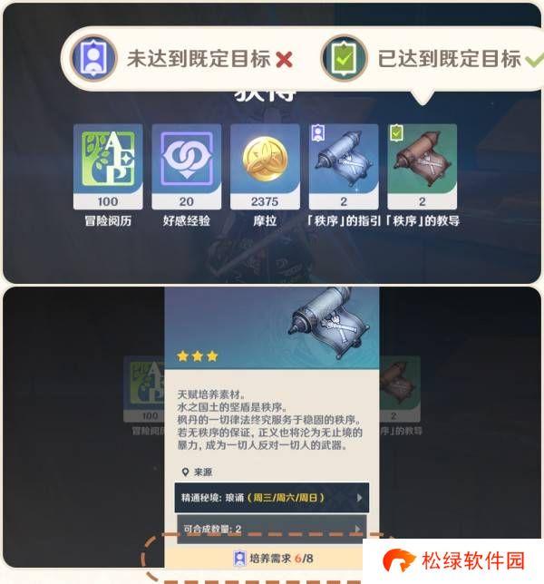 除此之外,在收集养成材料的过程中,也会实时提示所需的养成材料的收集进度,帮助旅行者随时判断你是否已经达成既定的目标。